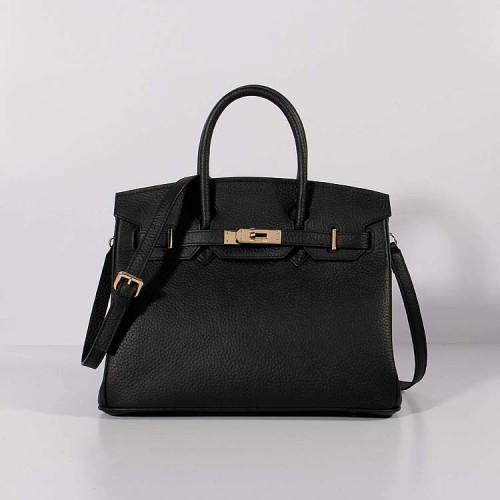 • Hermes 30cm Borsa Birkin Togo Pelle con Cinturino Nero Oro