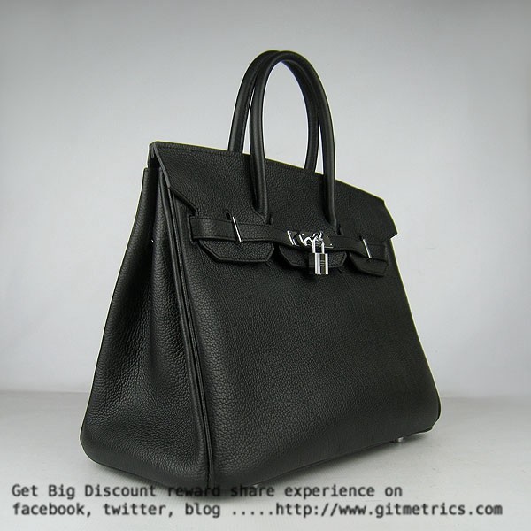 Hermes Birkin 35cm pelle bovina vena Borse nero argento