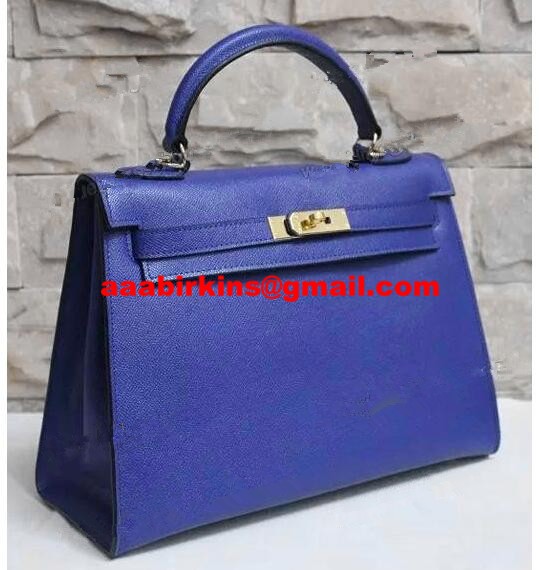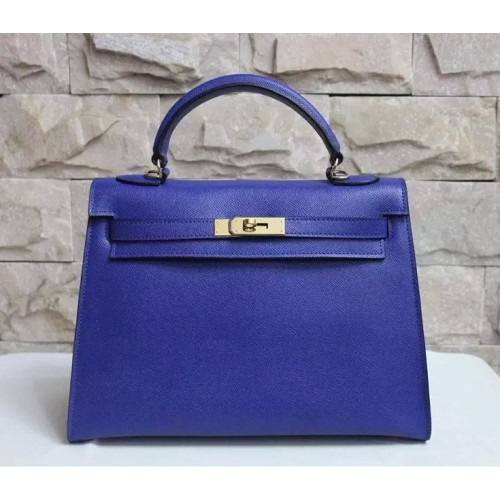 Hermes Kelly 32cm Borsa a mano in pelle Epsom blu elettrico oro
