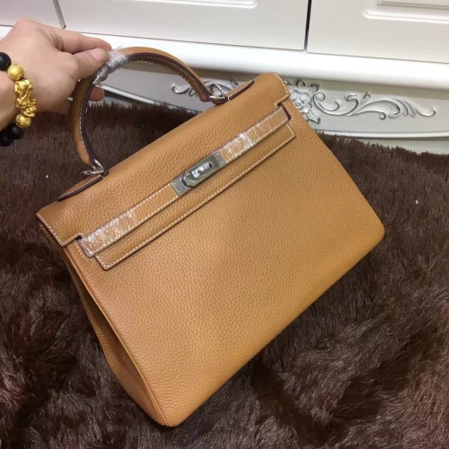 Hermes Kelly 32cm Pelle Togo 6108 argento caffè chiaro