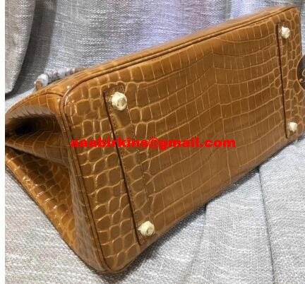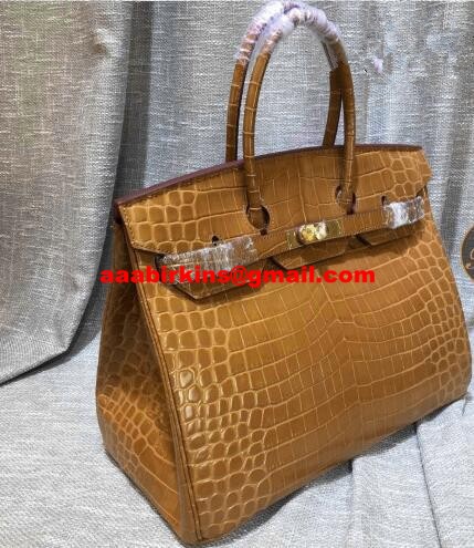 Hermes Birkin 35cm Borsa a mano in pelle di coccodrillo marrone oro