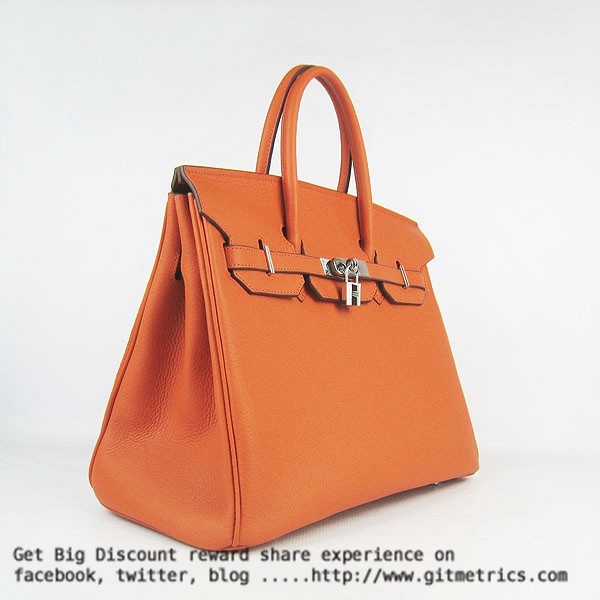 Hermes Birkin 35cm pelle bovina vena Borse arancione argento