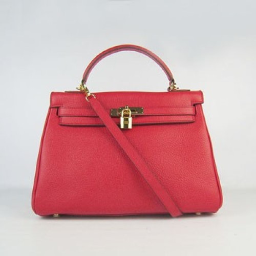 Hermes Kelly 32cm Togo Borsa a mano in pelle rosso/oro