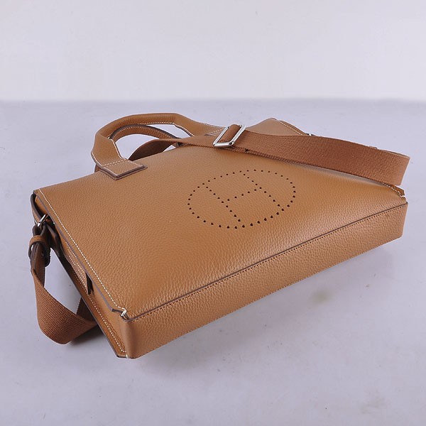 Il materiale è una bellissima pelle, molto elegante e resistente. Strisce di pelle con cuciture delicate circondano la custodia della borsa. L'interno è foderato in morbida pelle di vitello e presenta 2 scomparti. Ogni scomparto ha una tasca laterale. Logo Hermes stampato all'interno. Questa è una borsa MOLTO MOLTO sobria. Sicuramente un classico e può essere indossato tutto l'anno.