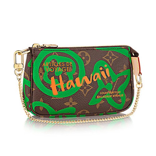 Catturando lo spirito dell'estate, la collezione Resort 2017 in edizione limitata unisce l'iconica tela Monogram a un'interpretazione audace e luminosa della stampa Tahitienne, adattata dagli archivi Louis Vuitton. Ideale per contenere gli oggetti essenziali, l'elegante Mini Pochette Accessoires può essere attaccata a una borsa o portata da sola.