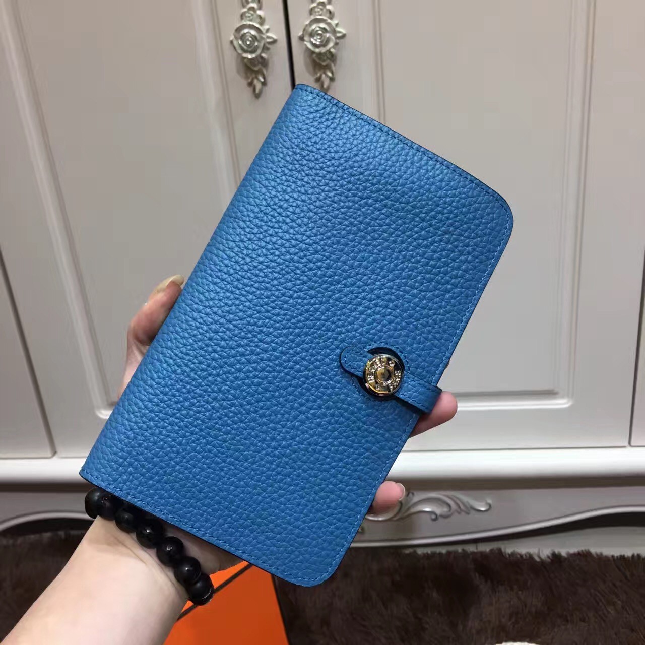 Portafoglio Hermes Dogon in pelle Togo H001 blu