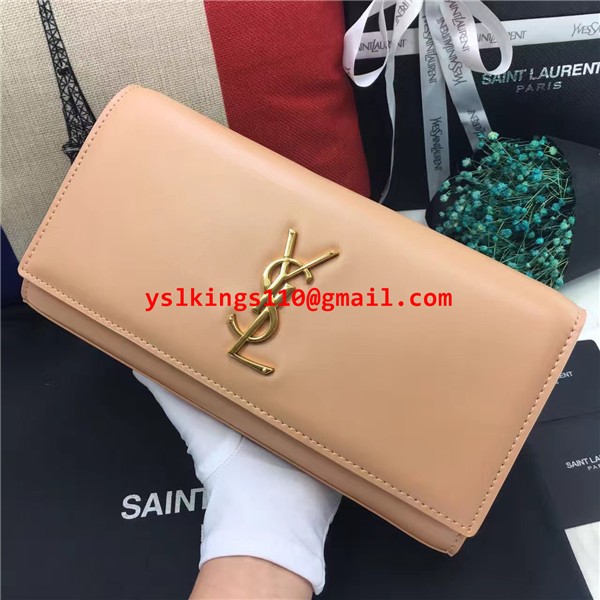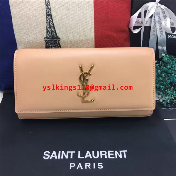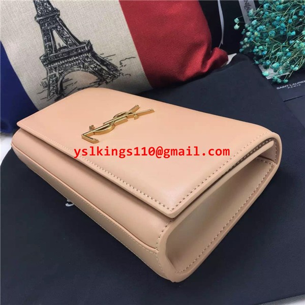 Pochette YSL Saint Laurent 27 cm in pelle liscia albicocca