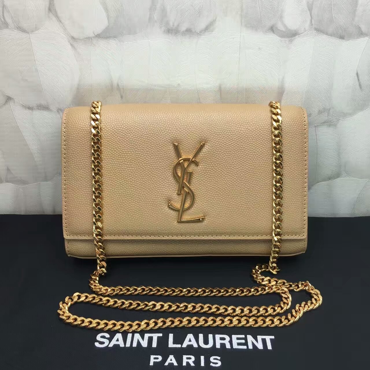 Borsa a catena in pelle caviale YSL 22cm Albicocca oro