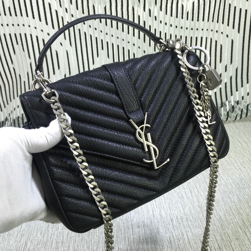 Classica borsa a mano Saint Laurent con tracolla rimovibile in pelle e catena in metallo e chiusura con fibbia firmata YSL.