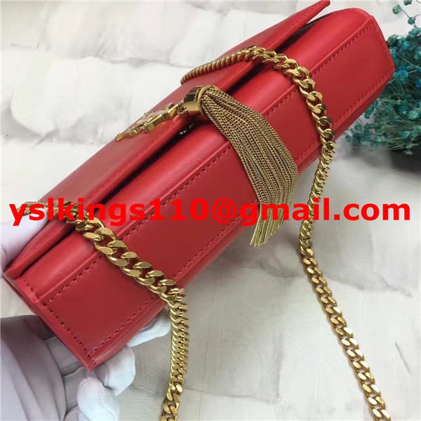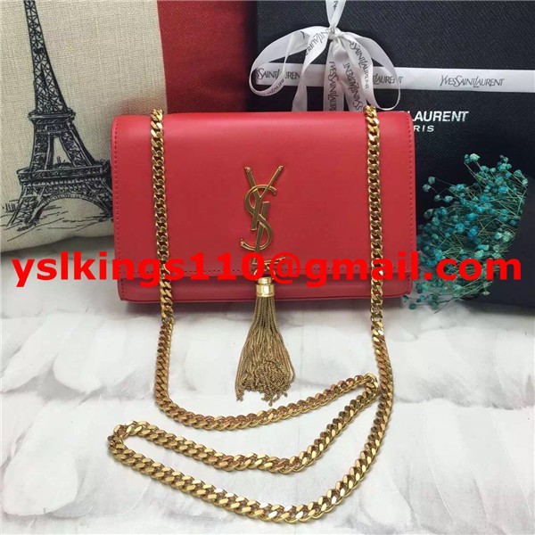• Borsa a catena con nappe YSL 22 cm in pelle liscia rosso oro