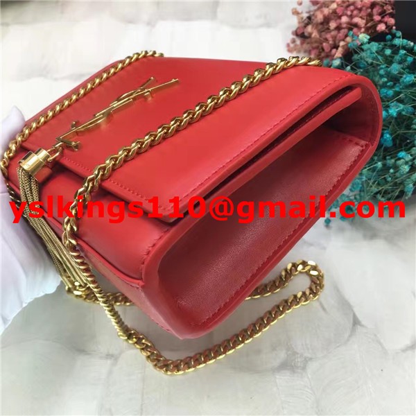 Borsa a catena con nappe YSL 22 cm in pelle liscia rosso oro
