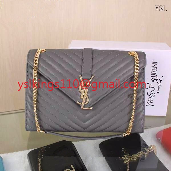 YSL Saint Laurent Borsa classica grande con monogramma grigia 31 cm