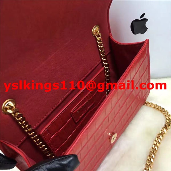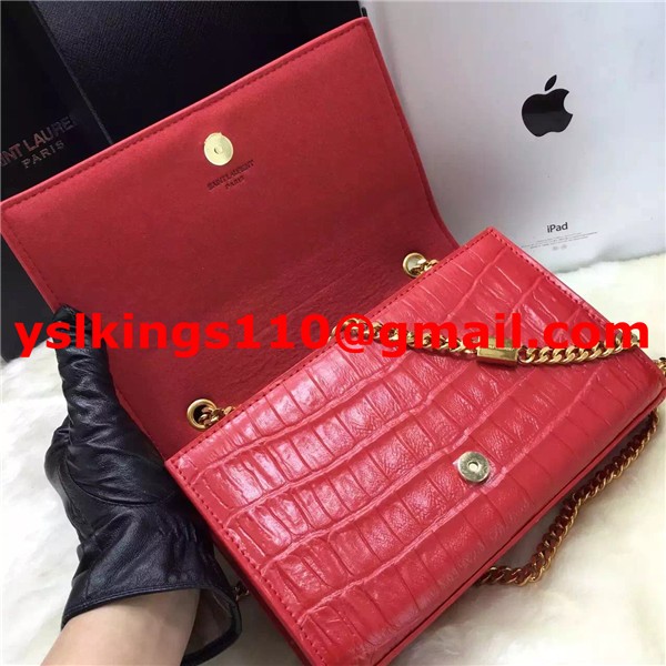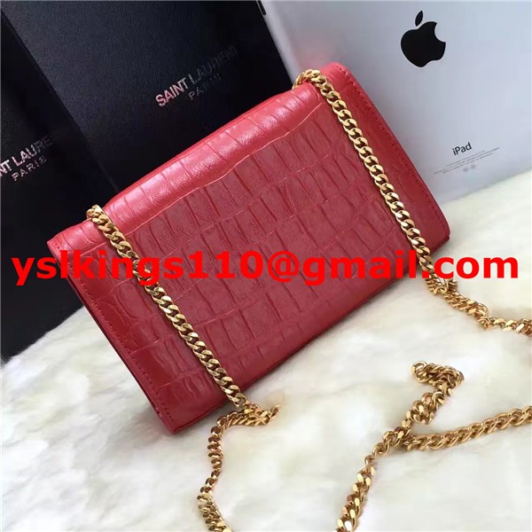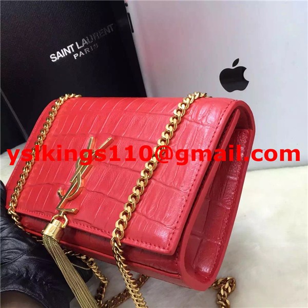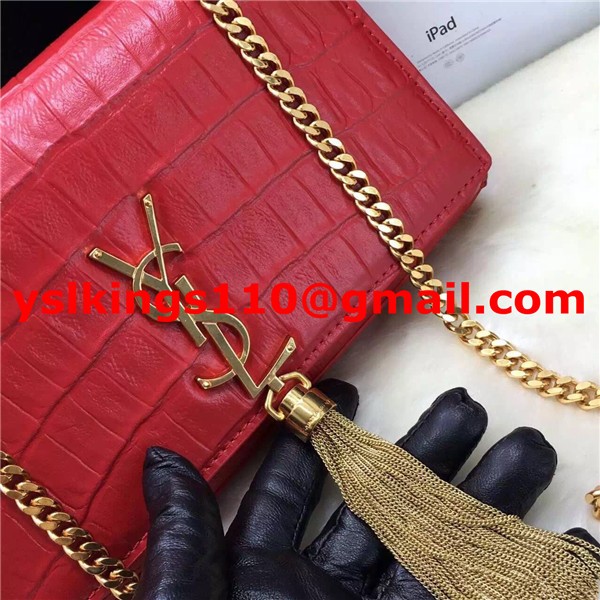 YSL Borsa a catena con nappe 22 cm Croco Red Gold